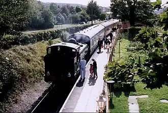 Following discussions with Network Rail, an extension of about a mile (1.5 km) to Princes Risborough main line railway station was undertaken, with a view to running into Princes Risborough station.[3] This would allow passengers to connect from Chiltern Railways services on the Chiltern Main Line. Previously, the line was reconnected at a point just yards from the head shunt at Thame Junction for special events to allow trains to run into Princes Risborough station: in October 2013, the line was reconnected for the first 3 weekends for the Railway's "Haversham & Friends" celebrations,[4] and the first through-train for 57 years, a rail tour from Aylesbury via Princes Risborough, ran on 5 October 2013.[5][6]