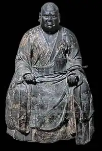 Chinsō (Japanese: 頂相 [tɕiɰ̃soː]; alternatively pronounced Chinzō [tɕindzoː]) are commemorative portraits of Zen masters, a traditional form of East Asian art, specifically Zen art. They can be painted or sculpted and usually present a Zen master ceremonially dressed and seated upright in chair.[1] Chinsō include realistic portraits of prominent Zen monks, possibly commissioned by them and painted while they were alive or shortly after they died, as well as depictions of famous Zen patriarchs from the past[1] commissioned by his disciples.[2]
