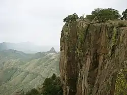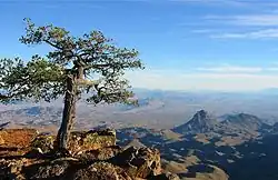 The Chisos Mountains, also known as the Chisos, are a mountain range located in the Big Bend area of the Trans-Pecos region of Texas, United States.[1] The mountain system covers 40 square miles (104 square km) and is contained entirely within the boundaries of Big Bend National Park, making it the only mountain range in the United States fully contained within a national park.[1][2] The Chisos Mountains are the southernmost mountain range in the mainland United States.