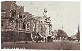 In 1910 the theatre owner and manager Oswald Stoll made a proposal to build a music hall on a site on Chiswick High Road, facing Chiswick's Turnham Green. There followed a public debate with many local people opposed to Stoll's plan, arguing that such a venue would be unsuitable in one of the more select residential areas in the town. Others were concerned that a music hall would encourage working-class people to waste their money: "having too many music halls is a great blow to thrift – a great weakness of the English race was their want of thrift"[1] suggested one local resident. However, the new theatre had enough local support for a 2,000 signature petition in its favour. Permission was granted and Stoll built his new theatre at 414 Chiswick High Road; some shops and the local smithy had to be demolished to accommodate it.[1]
