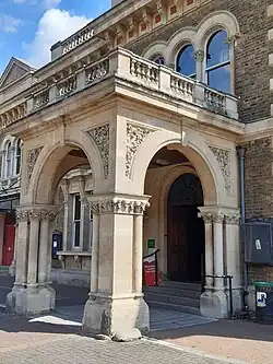 The new building was designed by William Joshua Trehearne in the Italianate style and opened in 1876.[5] The design involved a symmetrical main frontage with three bays facing onto Heathfield Terrace; the central section featured a porte cochère flanked by Corinthian order columns on the ground floor; there were three round arched windows on the first floor with a pediment above.[1] Internally, the principal room was the council chamber on the first floor.[1]