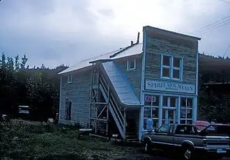 The Chitina Tin Shop, also known as Fred's Place and Schaupp's, is a historic retail building on Main Street in Chitina, Alaska. It is a wood-frame structure, two stories in height, with a flat-topped false front in front of a gable roof. The building is 17 feet (5.2 m) wide and 33 feet (10 m) deep. It was built in 1912 by Fred Schaupp, during Chitina's building boom following the arrival of the Copper River and Northwestern Railway. The building is one of only a few surviving tin shops (essentially a metalworking facility) in the state. The first floor was occupied by the workshop, while living quarters were above. Following the closing of the railroad in 1938, the building has seen a variety of other uses.[2] The building has been restored, and now houses an art gallery.[3]