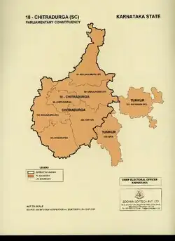 Chitradurga is one of the 28 Lok Sabha (parliamentary) constituencies in Karnataka state in southern India. This constituency is reserved for the candidates belonging to the Scheduled castes[1] This constituency covers the entire Chitradurga district and part of Tumkur district.