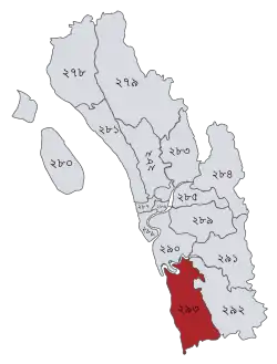The constituency was created when, ahead of the 2008 general election, the Election Commission redrew constituency boundaries to reflect population changes revealed by the 2001 Bangladesh census.[3] The 2008 redistricting added a new seat to Chattogram District, increasing the number of constituencies in the district to 16.[4] The seat for Sandwip Upazila was renumbered from Chittagong-3 to Chittagong-16, and seats 2 through 7 were shuffled around so that the three metropolitan seats (Chittagong-8, 9, and 10) could be split into four (Chittagong-7, 8, 9, and 10).[5][6]