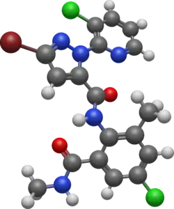 Chlorantraniliprole is an insecticide of the diamide class used for insects found on fruit and vegetable crops as well as ornamental plants.[1]