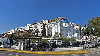 Chora or Hora (Greek: Χώρα[2]), officially Ios (Greek: Ίος), is the capital town of Ios Island in Greece and is the largest settlement on the island. It contains many of the island's facilities of tourism such as hotels and apartments. The town has only some small roads for cars many paths only accessible by foot. It is built between two small hills and in the town there are at least 24 small churches with the most famous one being the church of Panagia Gremiotissa ("Panagia of the Cliff").[3] The modern town sits on the ruins of the ancient polis (city-state) of Ios.[4]
