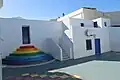 Chora has many churches and two monasteries, Agia Triada (Holy Trinity), the oldest church on the island, the Church of Saint Savvas dating from the 17th century, the Church of Metamorfosis Sotiros (Transfiguration of Christ) with an iconostasis dating to the 17th century, the church of Saint John Theologos, Saint Nicholas, Saint Barbara in Asteras, the Monastery of the Virgin of Nikous and the Monastery of St John the Baptist in Chordaki. Old destroyed windmills can be found in Chora. [7][8][9]