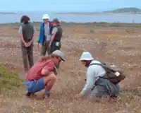 Research suggests that areas with grazing cattle contain a larger number of plants than areas where animals are excluded, but the plants in the exclusion areas are larger and have more flowers.[3][4] Cattle do not eat the rare plant and may in fact help clear the land of invasive non-native plants, such as velvetgrass (Holcus lanatus).[3] The land around Abbotts Lagoon is a cattle pasture today.[3]