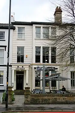 The façade of the former Chorlton-on-Medlock Town Hall can be seen at its original location on Cavendish Street. The building, with its Doric portico, dates from 1830–31 and was designed by Richard Lane.[7] In Nelson Street the former home of the Pankhurst family is now the Pankhurst Centre. The Ormond Building of the Manchester Metropolitan University was originally the home of the Chorlton Union Board of Guardians (responsible under the 1834 Poor Law for most of what is now south Manchester). Next to the town hall building is the original building of the Manchester College of Art (1880–81: architect George Tunstal Redmayne) in a Gothic Revival style.