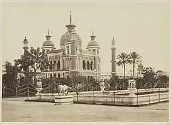 Chota Imambara, also known as Chhota Imambara, or Imambara Hussainabad Mubarak is a monument located in the city of Lucknow, Uttar Pradesh, India. It took 54 years to build. Built as an imambara, or a congregation hall for Shia Muslims, by Muhammad Ali Shah, the Nawab of Awadh in 1838,[1] it was to serve as a mausoleum for himself and his mother, who is buried beside him.[2]
