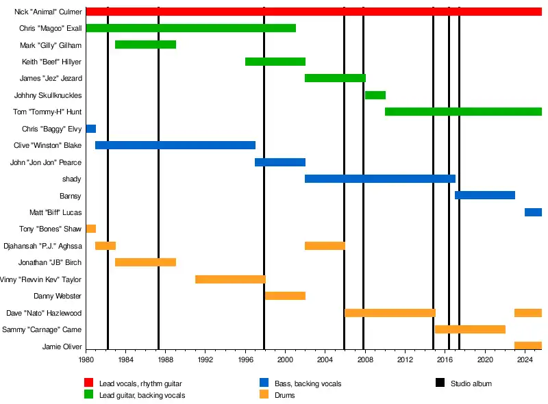 - Chris "Magoo" Exall – guitars (1980–2001)