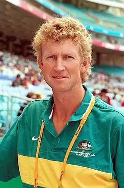 In 1981, he moved to Brisbane to be closer to his partner and athlete Glynis Nunn (née Saunders).[3] Due to the lack of coaching in Brisbane, they returned to Adelaide.[3] He won national title medals in men's 110m hurdles and decathlon.[2] He and Glynis competed at the 1982 Commonwealth Games in Brisbane. He competed in the men's decathlon but withdrew during the event due to injury.[3] At the 1984 Olympic Games in Los Angeles, his wife Glynis won the gold medal in the women's heptathlon. In the lead up to the Games, he coached his wife in shot put and javelin.[3] He retired from competitive athletics in 1989.[3]