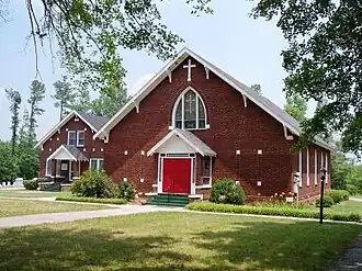 Christ Episcopal Church is a historic Episcopal church complex located near Cleveland, Rowan County, North Carolina, USA. The complex includes the 1826-1827 gable-front vernacular Gothic Revival- and American Craftsman-style brick veneered, heavy timber frame chapel; a 1926 Craftsman-style parish house attached to the original building by an open brick arcaded breezeway; and a historic cemetery.[2]