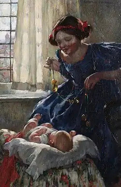 • Morning Play (1910), oil on canvas (54 × 36 cm), woman and baby[17]