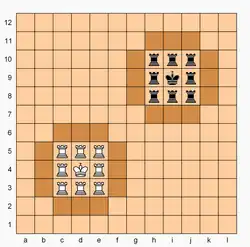 - ^ The marshall combines a chess rook and chess knight; the cardinal combines a bishop and knight.