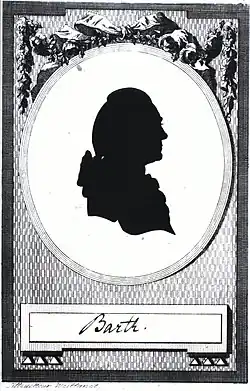 Christian Samuel Barth was born in Glauchau, as the son of the merchant George Samuel Barth. He studied at the Thomasschule zu Leipzig, where he was educated by Johann Sebastian Bach.[1] As an oboist, Barth worked from 1753 in the court orchestra in Rudolstadt, from 1762 in Weimar, from 1768 in Hannover and from 1772 in Kassel. Finally, in 1786, he became a member of the Hofkapelle at the royal court in Copenhagen, which was then briefly under the direction of Johann Gottlieb Naumann. On account of his age and infirmity, he was relieved from his duties in 1798 and received an annual pension of 500 Reichsthaler until his death in 1809.[2]