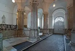 Danish craftsmen were unable to undertake the difficult work of restoring and recreating the interior's scagliola. One of Germany's leading experts, Manfred Siller, took charge and taught the venerable technique to Danish stucco workers.