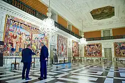 The Great Hall was renovated on the occasion of Queen Margrethe II's 60th birthday when artist Bjørn Nørgaard's 17 tapestries recounting the history of Denmark were hung on the walls. The tapestries were a gift from the Danish business community on the occasion of Queen Margrethe II's 50th birthday.