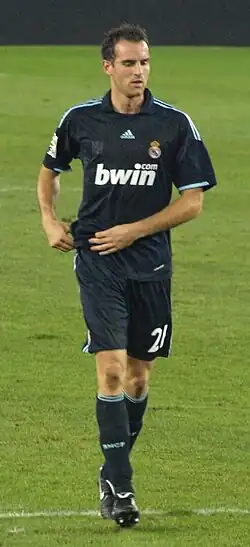 On 18 April 2007, after failing to renew his contract at Borussia,[12] Metzelder transferred to Real Madrid at the end of the season on a free transfer.[13][14] In February 2008, after managing to be injury-free in the first months of his Spanish adventure, he had surgery on the sole of his foot, resulting in him missing nearly 60 days of action;[15] on 11 May, after having already missed the UEFA Champions League round-of-16 clash against A.S. Roma, he returned and played the full 90 minutes against Real Zaragoza (2–2 away draw).[16]
