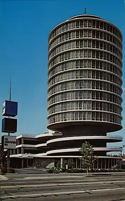 The Christopher Inn was designed by Karlsberger & Associates, along with Leon Ransom, the first known African American architect of prominence in Columbus.[4][3] The cylindrical hotel, representative of the mid-century modern style, featured a simple design, ample use of glass, and open interiors.[3] It was considered a motor inn due to its size and the parking located beneath the hotel.[3] The building had 16 floors and 137 pie-slice-shaped rooms, with a heated pool.[1] The structure used 710 glass panels throughout.[3]