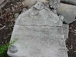 Damaged headstone for Porter in the Christ Church Anglican cemetery, Tingalpa