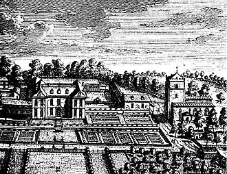 Whixley Hall, with the Church of the Ascension on the right, in 1707