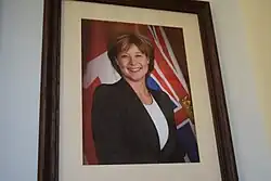 A member of the British Columbia Liberal Party, Clark was a member of the Legislative Assembly (MLA) from 1996 to 2005 and was deputy premier from 2001 to 2005 during the first term of Gordon Campbell's government. She left politics in 2005, and became the host of an afternoon radio talk show.[1] After Campbell's resignation, Clark won the 2011 leadership election, becoming premier. She re-entered the legislature after winning a by-election on May 11 in Vancouver-Point Grey, the seat left vacant by Campbell. The Liberals were re-elected in the 2013 provincial election in an upset victory. In the 2017 provincial election, the Liberals were reduced to 43 seats—one short of a majority.[2] Following a confidence and supply agreement between the NDP and Green Party, Clark's minority government was defeated 44–42, and NDP leader John Horgan succeeded her as the premier on July 18. Clark subsequently announced that she was resigning as Liberal leader effective August 4 and leaving provincial politics.