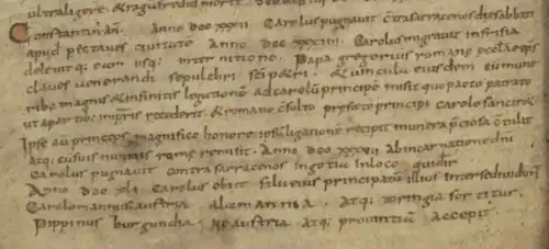 The manuscript transmission of the Chronicon demonstrates that neither the first nor the second edition were conceived "as stand-alone historiographies".[18] In its "openness to constant revision" it is similar to the Frankish "minor annals" of the eighth century, on at least two of which it drew.[3]