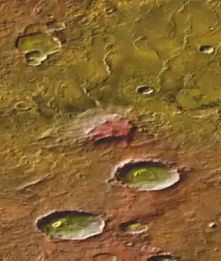![]() Chronius Mons is the large feature visible above the two craters in the center of the Photograph. | |