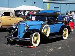 The Series CJ introduced a different chassis from the previous Series 60 and 70 in that it was closer to the ground, and introduced hydraulic internal brakes, a fuel pump, rubber spring shackles and hydraulic shock absorbers, while introducing a narrow profile radiator that was slightly angled rearwards that was used by the Chrysler Eight and Imperial. The Series CJ was offered as a Roadster, Business Coupe or Convertible Coupe, which was listed at US$925 ($17,411 in 2024 dollars [5]) and a Touring Sedan or closed-body Royal Sedan, listed at US$845 ($15,905 in 2024 dollars [5]). The 1931 Series CM was essentially the Series CJ with cowl lights added at the edge of the engine hood and cowl next to the front door leading edge. The Series CM introduced the new Cord L-29 influenced Chrysler corporate appearance shared with DeSoto, Dodge and Plymouth.[3]