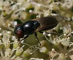 Chrysogaster cemiteriorum is a European species of hoverfly[12] which can be found feeding on umbelliferous flowers wetlands and damp meadows.