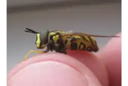 Chrysotoxum pubescens, the yellow-throated meadow fly, is a North American species of syrphid fly in the family Syrphidae.The adults are strong mimics of wasps.[1] Larvae of this species have been described.[2][3]
