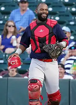 Robinson was promoted to the Reds' major league roster on August 11, 2022.[14] He made his Major League debut on August 24, starting at catcher and going 1–2 with one run scored in a 7–5 loss to the Philadelphia Phillies.[15] Robinson's debut was the first time that an African-American player had started at catcher since Bruce Maxwell had in 2018.[16] On August 29, Robinson hit his first career home run, a two–run shot off of St. Louis Cardinals starter Miles Mikolas.[17] On October 15, Robinson was removed from the 40-man roster and sent outright to Triple–A Louisville.[18] He elected free agency following the season on November 10.[19]