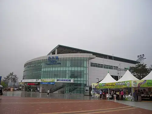 Chuncheon station (Korean: 춘천역) is a railway station on, and the eastern terminus of the Gyeongchun Line in Geunhwa-dong, Chuncheon, Gangwon Province, South Korea. It was opened in 1939 as a regular train station and became a subway stop in 2010.[1]