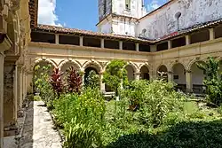 The two-story cloister is a common feature of Franciscan convents in the Northeast of Brazil. The cloister of the church and convent in São Cristóvão was likely completed in 1730. It has square pillars with chamfered angles and carved floral motifs. The art historian Germain Bazin stated that it is an "original work [...] in the baroque spirit, breaks with the intentional classicism of the other cloisters; it corresponds to the taste for sculptural ornamentation which characterizes the Sergipe region, where there were fine limestone rocks available."[5]