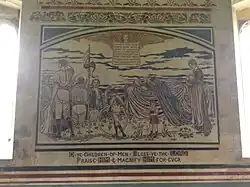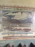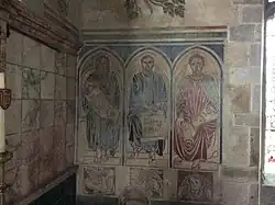 In the 1980s, the church was declared redundant and threatened with demolition.[4] It was vested in the charity the Friends of Friendless Churches in 1989, and the charity has held the freehold since 22 November 1989.[3] The charity was supported by the Victorian Society and received financial support from Cadw and the Pilgrim Trust.[4] The graveyard contains a private burial ground dedicated to members of the family of Richard Crawshay, and his nephew, Crawshay Bailey, the ironmasters of the Cyfarthfa Ironworks who had a house nearby, Maindiff Court, Abergavenny.[3] The wall paintings were restored in 2006–07 in memory of Roy Jenkins.[6] The architectural historian John Newman wrote of Sumner's decoration; "it should make Llanfair Kilgeddin a place of pilgrimage for disciples of the Arts and Crafts movement".[5] The Church of St Mary is a Grade I listed building.[7]