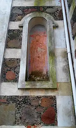Destroyed fresco on the facade of the church
