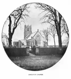 There is no evidence of a church at Embleton preceding the Conquest. There are, however, some remains which indicate that there was a stone church on this site before the end of the 11th or in the early part of the 12th century consisting of a nave without aisles, a tower and a chancel. Of the tower, the lower portion remains. Light was provided by two windows, which are partly obscured.[4]
