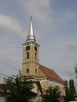Located on the left bank of the Sebeș River, the church was built by the local Orthodox community as its population increased in the early 19th century. Funding came from parishioners, aided by the efforts of Archpriest Zaharie Moga and his brother, Bishop Vasile Moga. The cornerstone was laid in 1819 and continued with difficulty until 1824. At that point, the structure was largely complete, but the spire was not yet covered with brass sheeting, the iconostasis was not painted, there were no doors or windows. By 1827, these deficiencies had been overcome. The church was consecrated the following year, with Bishop Moga participating in it.[1]