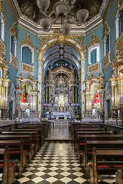 The Church of the Third Order of Mount Carmel (Portuguese: Igreja da Ordem Terceira do Carmo, also known as the Igreja da Ordem Terceira do Monte do Carmo) is an 18th-century Roman Catholic church in Salvador, Bahia, Brazil. It is located adjacent to the Church and Convent of Our Lady of Mount Carmel (Igreja e Convento de Nossa Senhora do Carmo). Work on the church began in 1644. It was destroyed by fire in 1788 and subsequently rebuilt. The church is a large complex consisting of a nave, chancel, choir, corridors, tribunes, meeting rooms, and a sacristy. The interior was richly decorated in the 18th century; the painting of the ceiling of the nave is the first major work by José Teófilo de Jesus. The Church of the Third Order of Mount Carmel was listed as a historic structure by National Institute of Historic and Artistic Heritage (IPHAN) in 1938 and is part of the Historic Center of Salvador UNESCO World Heritage Site.[1][2][3]