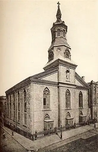 The Church of the Transfiguration had its origins in 1827, when the Rev. Felix Varela y Morales purchased the former Episcopalian "Christ Church" on Ann Street to serve as a home for the fourth Catholic parish established on Manhattan. When the building on Ann Street became unsafe to use, in 1836 Father Varela purchased a former Scottish Presbyterian church on Chambers Street, renaming it the "Church of the Transfiguration", and his congregation moved there. The congregation had outgrown its Chambers Street church by 1853, leading to the purchase by the (then) Roman Catholic Diocese of New York of the larger church building on Mott Street to serve as a new home for the parish.[8] The parish therefore has the unusual history not only of having been located in three different locations in the city, but each time having as its home a building originally built as a Protestant church.
