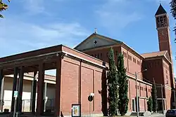 It was built on the land on Via Genova donated by Andrea Tosi starting in 1923 (laying of the foundation stone on October 15).[47] The design was made by architects Gabriele Rechichi and Italo Azimonti. The first Holy Mass was celebrated in 1924 in a temporary wooden church. The actual church was built starting in 1925 and was consecrated ten years later.