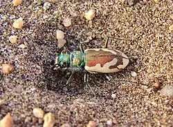 Cicindela theatina, commonly known as the Great Sand Dunes tiger beetle, is a predatory beetle found in sparsely vegetated sandy habitats.[1] The species' range encompasses only about 290 square kilometres (110 sq mi) in the Great Sand Dunes National Park in Colorado.[2] Despite its small range, the species is relatively secure because its entire habitat is within a protected national park.[3][4]