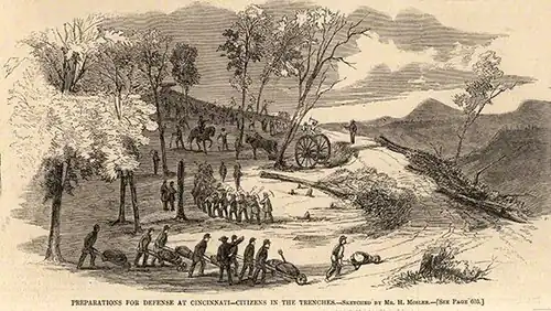 In September 1862, Confederate Brig. Gen. Henry Heth was sent north from Lexington, Kentucky to "make a demonstration" in front of Cincinnati, then the sixth largest city in the United States, according to Heth's memoirs. Mayor George Hatch declared martial law, and Union Maj. Gen. Lew Wallace organized the citizens for defense and raised the Black Brigade of Cincinnati. Along eight miles of hilltops from Ludlow to present-day Fort Thomas, Kentucky, volunteers and soldiers constructed rifle pits and other defensive works, which were defended by 22,000 Union soldiers and 50,000 local militia volunteers, called "Squirrel Hunters." On September 5, Governor Tod announced to the public that no more volunteers would be needed for the defense of Cincinnati, but he advised that all military organizations be kept up for future needs.[2]
