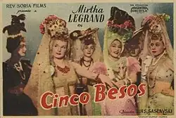 Cinco besos (English: Five kisses) is a 1946 Argentine comedy film of the classical era of Argentine cinema, directed by Luis Saslavsky and written by Saslavsky alongside Ariel Cortazzo. It premiered on March 8, 1946.[1]
