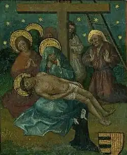The official foundation of the monastery can be established on 16 June 1224. That is when, in the presence of the papal legate Conrad van Urach, the foundation deed was signed by Gerard III, Count of Guelders, and his wife, Margaret of Brabant. However, this signing was only a legal formality, as the monastery had been established in Roermond several years earlier, from 1218.[2] The monastery church was incorporated in the Cistercian order in 1220,[3] although the building might not have been completed by then. It was consecrated by the Archbishop of Cologne.[3] The first abbess was Richardis of Bavaria, widow of Count Otto I of Guelders and mother of Gerard III.[4] At her request, the abbot of Kamp was appointed visitor by the pope.[3] She died in 1231 and was buried in the abbey.