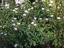 Cistus populifolius belongs to the white and whitish pink flowered clade of Cistus species.