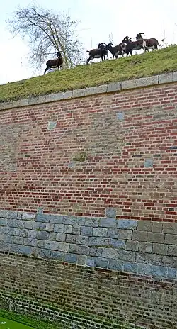 Soay sheep used by the city to crop vegetation around the fortifications. These small sheep are very comfortable on the slopes and replace the mechanical equipment otherwise required.