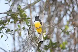 The citreoline trogon (Trogon citreolus) is a species of bird in the family Trogonidae. It is endemic to western Mexico, with an estimated distribution size of 539,000 km2[2] Due to this very large range, the IUCN consider it a species of Least Concern and that the current population trend is stable. T. citreolus has also been studied as an Ecosystem engineer.[3]