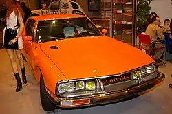 This car was unusual for France – production of luxury cars was heavily restricted in the country by post-World War II puissance fiscale horsepower tax, so France had not had a production vehicle in this market sector since before World War II.[4] The SM had an engine of only 2.7 liters owing to these regulations; it was the first response to the luxury/performance sector since the export oriented Chrysler Hemi V8 engine Facel Vega in the late 1950s.[5] Citroën's flagship vehicle competed with high-performance GTs of the time from other nations and manufacturers, such as Jaguar, Ferrari, Aston Martin, Alfa Romeo, Mercedes-Benz, Porsche and Maserati's Merak.